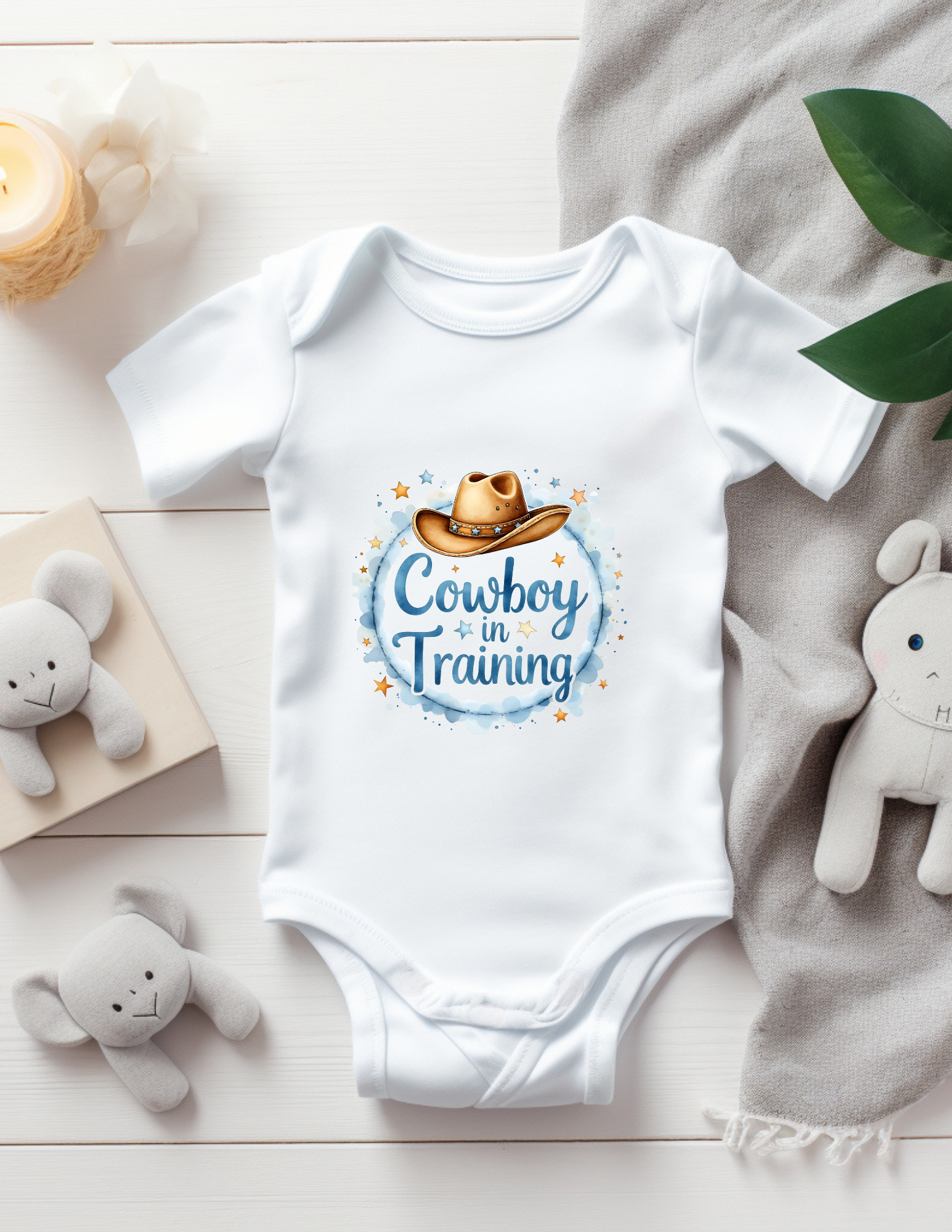 Saddle up your little one with this playful "Western Vibes" cotton onesie, perfect for the cowboy or cowgirl in training. Soft and comfy, it’s designed to keep your baby cozy while adding a fun, adventurous spirit to their everyday look. Ready for tiny rodeo dreams!